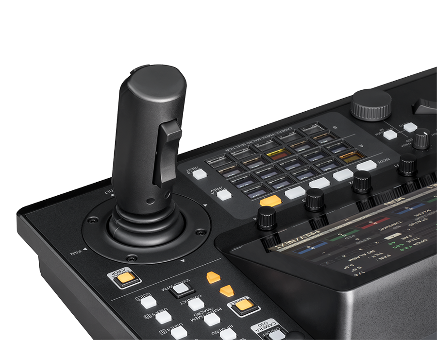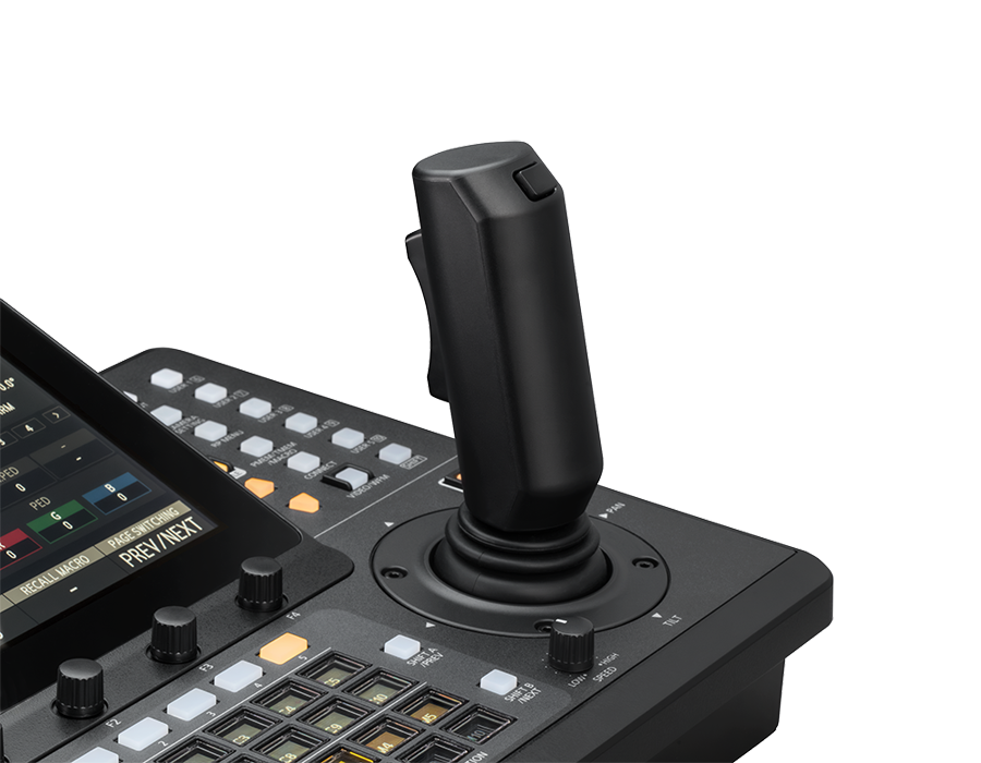 The AW-RP200GJ, building on its predecessor’s (AW-RP150GJ) highly regarded operability, introduces powerful new features such as convenient macro functionality for executing complex camera operations with ease, and dual left and right joysticks for flexible control. Such innovations enhance the controller’s performance for multi-camera productions, including in large-scale shooting environments, to elevate video content value.