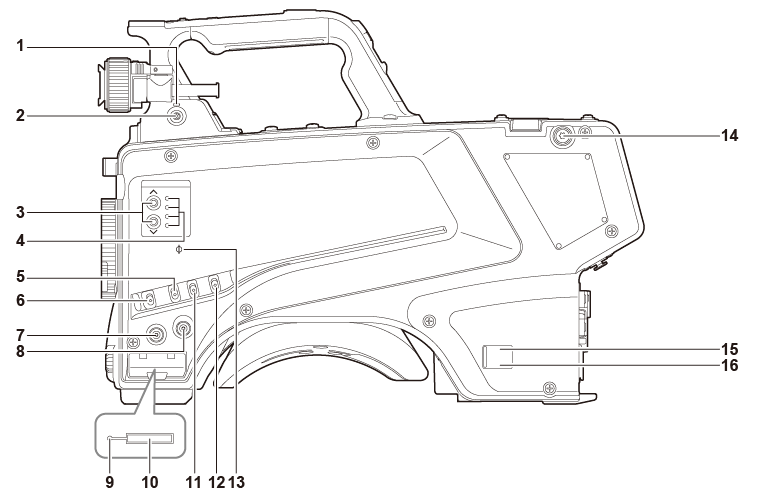 - <CCU>: When the camera is connected to the CCU, this switch turns on the power with the power supplied from the CCU.