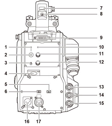 - The power for the microphone is supplied via this terminal, enabling use of a phantom powered (48 V) microphone. Turn the power off when connecting a microphone, and then configure the settings to suit the microphone after connecting the microphone.