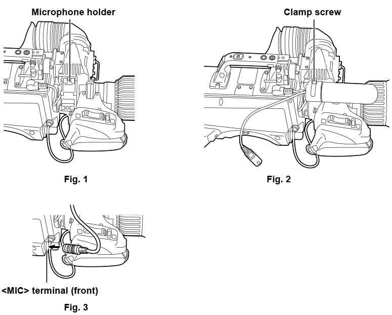 - Mount the microphone and tighten the clamp screw. (Fig. 2)