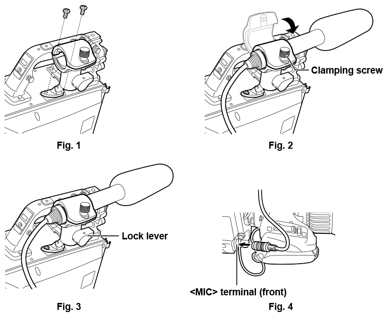 - Loosen the lock lever, adjust the angle of the microphone, and then tighten the lock lever. (Fig. 3)