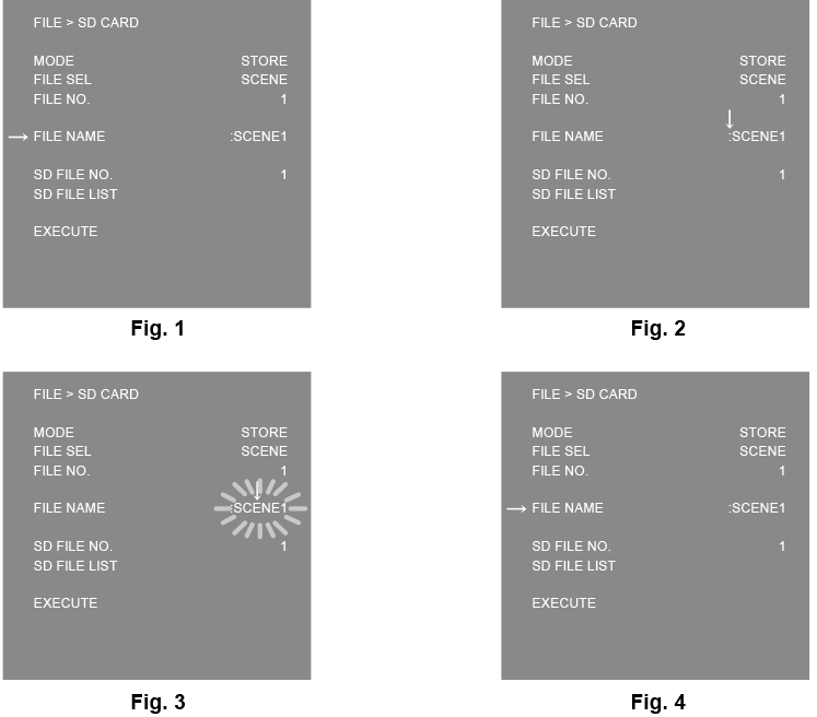 The cursor changes to a downward arrow which appears over the colon (:). (Fig. 1, Fig. 2)