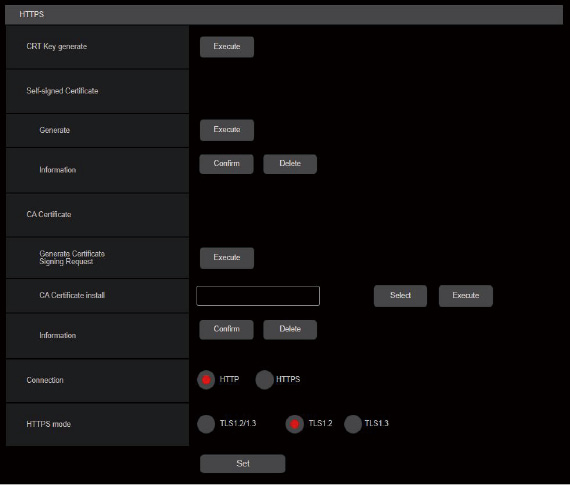 NOTE- When using an HTTPS connection, network connection with the AK-HRP1000, AK-HRP1005, AK-HRP1010, AK-HRP250, and AK-MSU1000 will be disabled.