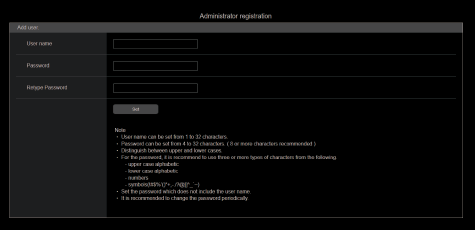 “Install the security certificate”When [User auth.] is set to [On], the user name and password input screen is displayed before the live screen [Live] appears.