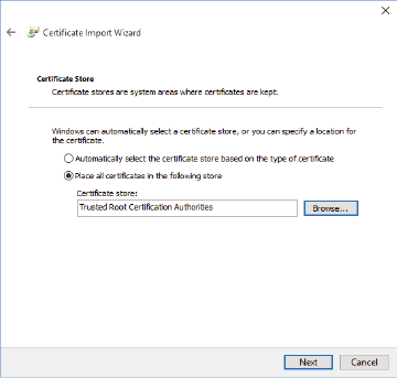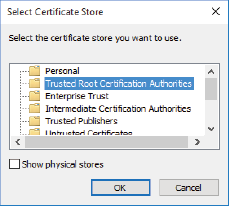 - Select [Trusted Root Certification Authorities] and click [OK].