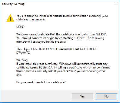 When using HTTPS to access the camera, the security warning screen will be displayed if the security certificate of the said camera has not been installed in your personal computer. To prevent this warning screen being displayed, the security certificate must be installed in accordance with the following procedures. If it is not installed, the security warning screen will be displayed every time the camera is accessed.