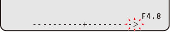 - 在 IRIS电平显示中,IRIS内存中存储的 IRIS F 值以中间的 (+) 表示,当前 IRIS F值在靠近中间的位 置显示为“